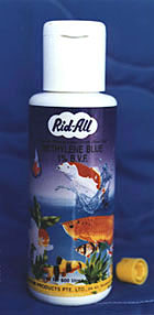 ![]() | "RID-ALL" METHYLENE BLUE 1% B.V.F.Is prepared according to the standard formula of the British VeterinaryFormulary for fish prescription. That means we use only the best qualityMethylene Blue B.P.C. which is the same quality used in Hospitals and Veterinaryclinics.Effective Aqainst: Ectoparasitic and fungal infections, and prevention of egg fungus. DIRECTIONS: By prolonged immersion - 5 ml to 25 litres. Dose may be doubled with care. CAUTION: Toxic to scaleless fish. NOT to use with Biological filters. PACKINGS: