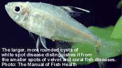 ![]() | "RID-ALL" ANTI-ICHIs the latest development in Aquarium Pharmaceuticals for the specific treatmentof Ichthyophthirus Multifiliis ("Ich" commonly known as "whitespots") in aquarium fish.It destroys ich parasites effectively within 24 hours and within 3 daysfor persistent cases. DIRECTIONS: On first detection if Ich, ( white pepper-like specks found on affectedfish) use 5 ml (one teaspoonful) to 25 litres ( 5 gallons) of water. Repeat treatment on second day for persistent cases. For Tetra species, marmyrids, loaches and baby fishes, use 5 ml. to 40 litresof water and continue treatment for two days or until recovers. For mouth and body fungi, fin and tail rot, torn fins, and sore sports,applied directly to affected areas with a cotton swab dipped in undilutedAnti-lch, or soak the affected fish for 15 seconds using a higher concentrationof 5 ml to 5 litres of water. If you do not mind the blue colouration, you may use this product to sterilisedyour aquarium tanks at 5 ml. to 10 litres of water for 6 hours. PACKING:
